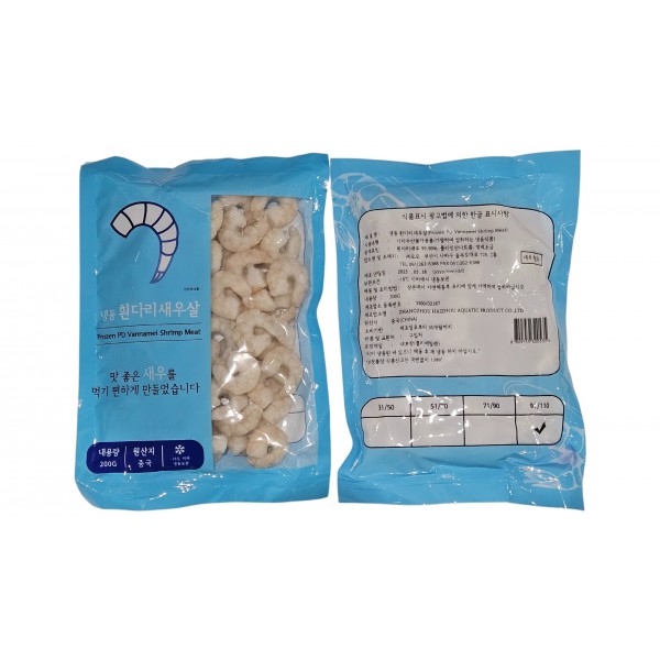 개별급속냉동(머리X, 껍질X, 꼬리O), 비자숙, 흰다리새우